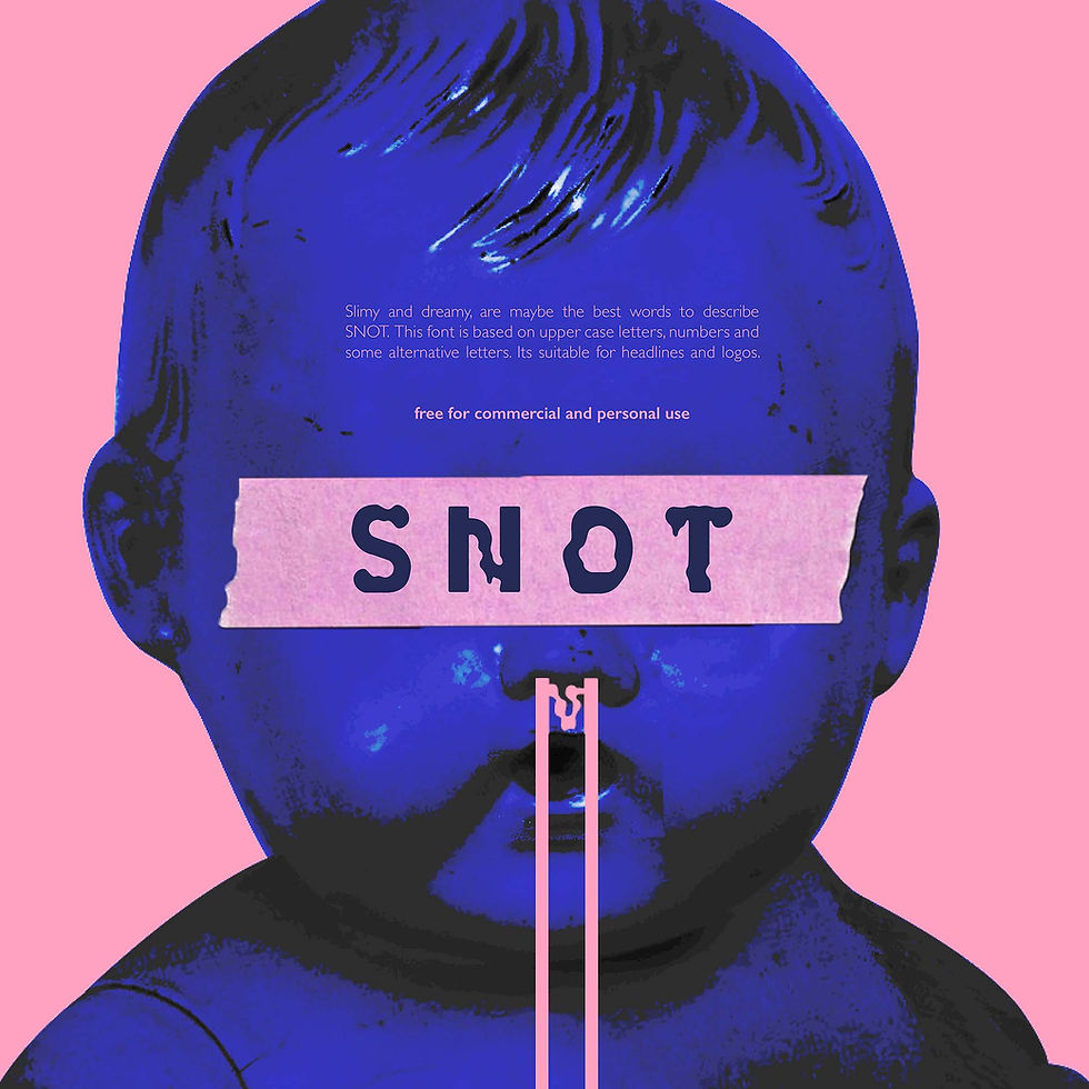 Snot, as gross as it may sound, is a super cool font. Both slimy and dreamy, this font has wobbly letters and slimy aspects, with some characters presenting an even stranger display while also having the same baseline and ascender for each letter. This font is ideal for children’s projects including animation videos or horror/ science fiction books, but you can also use it for movie posters, tickets, album art, comic books, branding designs, any anything else.